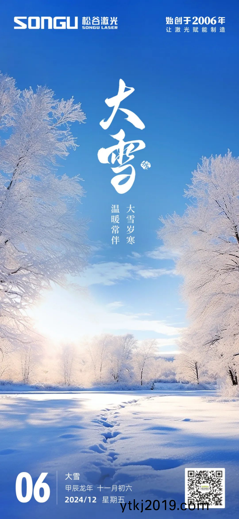 愿这漫天飞舞的雪花,如同松谷激光的精准光束,不仅装(zhuang)点了冬(dong)日的景致,更照亮您前行的每一步(bu)。大雪节气,是(shi)自(zi)然赋予的宁静与力量,正如松谷激光科技在激光领域的深耕细(xi)作,以科技之光,温暖每一个创新的(de)角落。