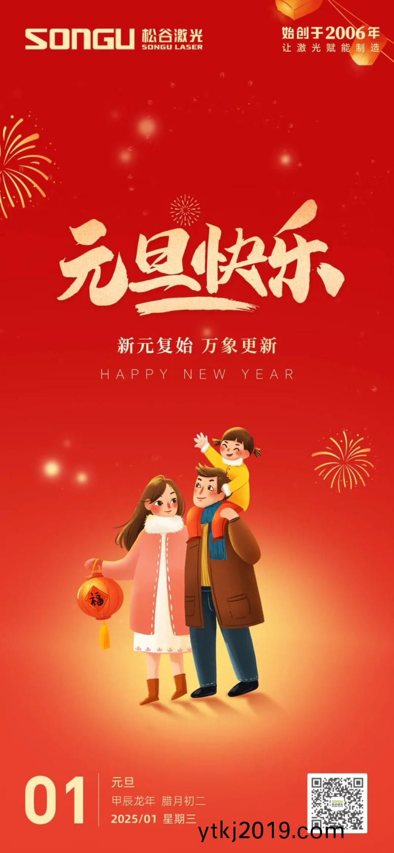 随着岁月的脚步(bu)悄然迈进,我们满怀激动与憧憬,共同迎来了充满希望(wang)的2025年元旦。在这个辞旧迎新的美好时(shi)刻,松谷激光科技向全体员工、合作伙伴以及一直以来给予我们支持与(yu)信任的朋友们致以最诚挚的(de)祝福(fu)和最深(shen)切的感谢!